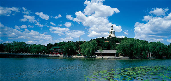 北海公园全园以北海为中心,面积达到0.69平方公里(其中水面约0.39平方公里)。湖口琼华岛上建的藏式白塔为全园标志。北海北岸是几组宗教建筑,有小西天、大西天、阐福寺,西天梵境等,还有五色琉璃镶砌的九龙壁,两面各有蟠龙9条,戏珠于波涛云际,造型生动,色彩明快。园内还保存有文物铁影壁、一座16面多角形塔式石幢、495方历代著名书法家真迹、万岁山团城和承光殿玉佛等。